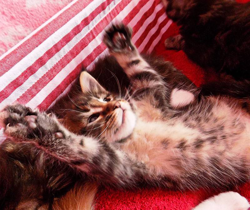 Cats live with us in the house and are free to move everywhere, they are a part of our family. They have their own rooms for entertainment. Kittens are socialized, affectionate and of course spoiled! Every kitten in our cattery has our personal attention. It is very important for us that new owners love cats with all of their hearts as we do!